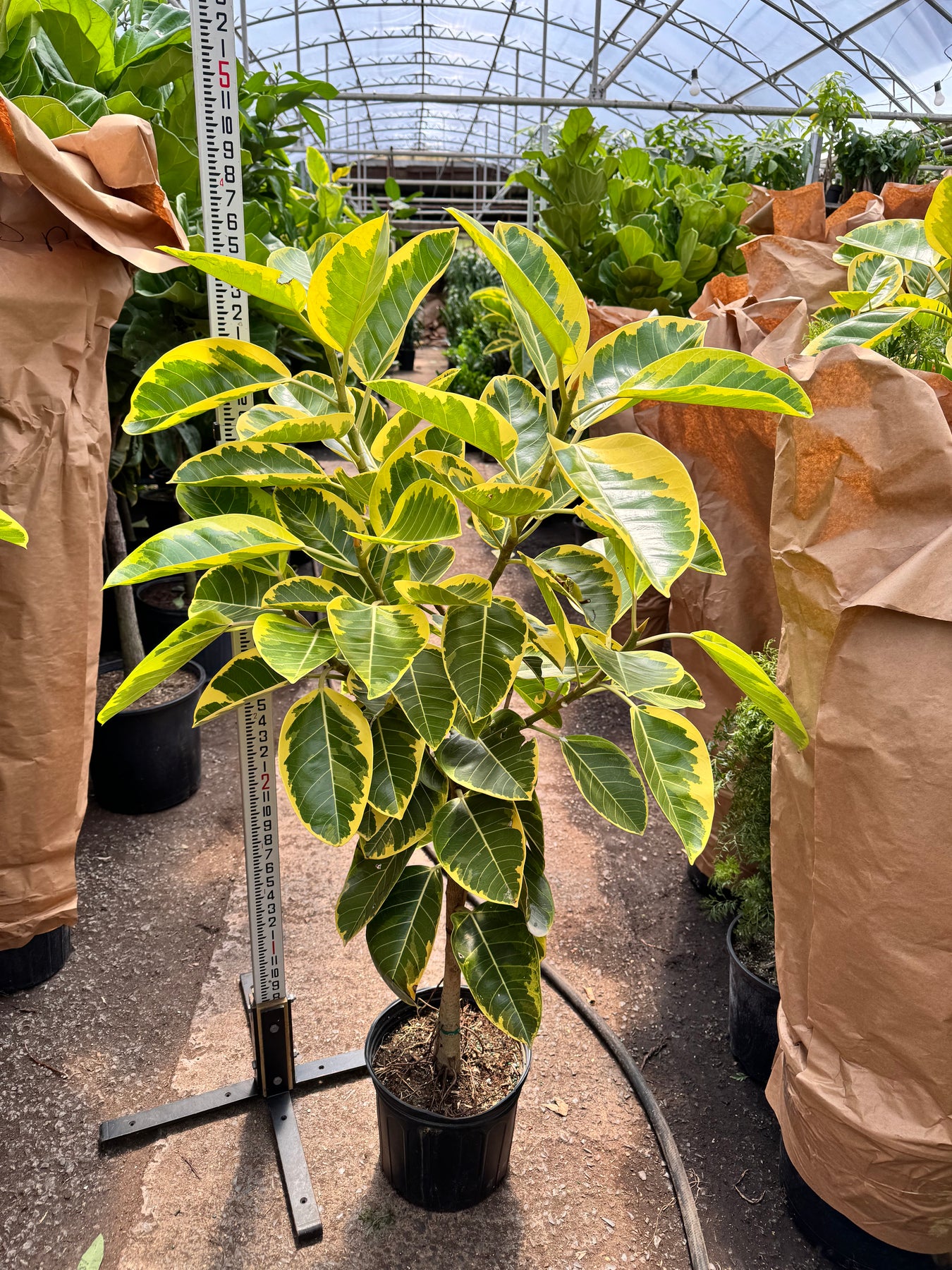 The Ficus Altissima is a vibrant addition to your indoor plant collection! It is a variegated plant, with neon hues of green and yellow. It is certainly one of the more whimsical-looking plants in the Ficus family. Its' leaves remind me of emeralds, and in fact, this plant has also been called the "Golden Gem" Rubber Tree! (Although it is not really a Rubber Tree, just a cousin)